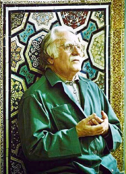 Born and raised in Esfahan, Farshchian was surrounded by various traditional designs and forms (Welch 1991; see also this documentary on his early life) (fig. 3). He was also an acute observer of carpet designs, owing to his father’s job as a carpet dealer. After training in traditional art in Esfahan under the Iranian master designer Eisa Bahadori (d. 1986), Farshchian left to study at the Academy of Fine Arts in Vienna, where he explored European museums. As a result of this background, his style reflects both traditional manuscript painting, known as negargari (نگارگری) in Iran, and western artistic traditions. In “Asr-e Ashura,” his use of color, dispersal of light, swirling and twisting lines, and circular composition are reminiscent of manuscript painting and carpet designs. On the other hand, the layered depictions of drapery and soft gradations of color echo the techniques of western painting. The fusion of these qualities forms his distinct style, sometimes referred to as ‘neo-traditional painting’ (نگارگری جدید, negargari-ye jadid) or ‘the new Persian painting’ (Rezaeinabard 2016).