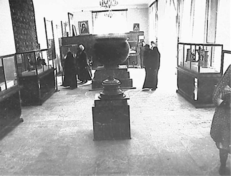 Between 1939 and 1943, Dr. Mehdi Bahrami prepared this basin for transfer to the Astan-e Qods-e Razavi Museum (موزهی آستان قدس رضوی), where it was displayed in its first exhibition (fig. 3). Today, this basin is on display in the main entrance hall of the museum, located just off the sahn-e Kowsar (Kowsar courtyard) (map) (vids. 1–2). The Astan-e Qods-e museum complex consists of four museums: the Central Museum, Carpet Museum, Qur’an and Rare Objects Museum, and Anthropology Museum (to the west in the Mehdi Qoli Beyg Bathhouse, map).