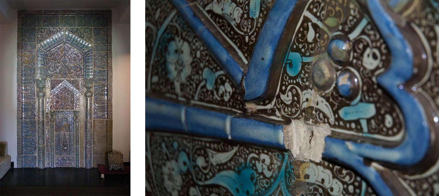 Blair first visited Varamin in 1978 while studying Ilkhanid architecture as a doctoral student and eventually returned for further research in 2014 (figs. 4–5). She has written two important essays on Varamin. The first, published in 2014, discusses the history and significance of the Emamzadeh Yahya’s 663/1265 luster mihrab (now in Honolulu) and demonstrates how inscriptions enable works of art to be examined as primary sources (fig. 6). The second, published in 2016, explores Varamin’s Ilkhanid period and the role architecture plays alongside textual sources in reconstructing histories.