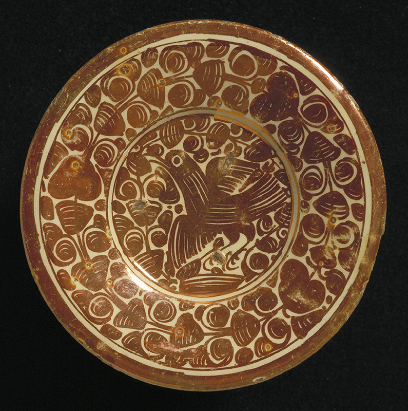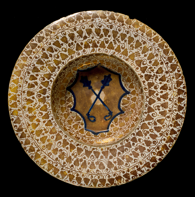 Large numbers of Iberian lusterware, spanning from twelfth-century Almohad production at Almería (map) to fifteenth-century Valencia wares, have also been found at Fustat in Egypt and other Eastern Mediterranean sites. Luster production in Egypt itself seems to have ceased by the end of the Fatimid period in 1171. Between the twelfth and fourteenth centuries, luster was only produced in a few centers in Syria and Iran [see Akbari’s essay here]. After that, it stopped altogether, due to the changing fashions caused by the influx of Chinese blue-and-white porcelain. Iberian imports, sent back to the lands where the luster technique had been invented, filled a gap when local taste outlasted local production (Rosser-Owen 2013).