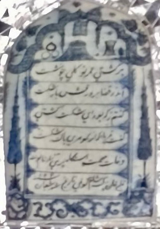 [*The blurry quality of the photograph makes it difficult to decipher some portions of the inscription. A few words could be interpreted differently, but the final reading reflects my interpretation. I thank Majid Daneshgar for discussing this inscription.]