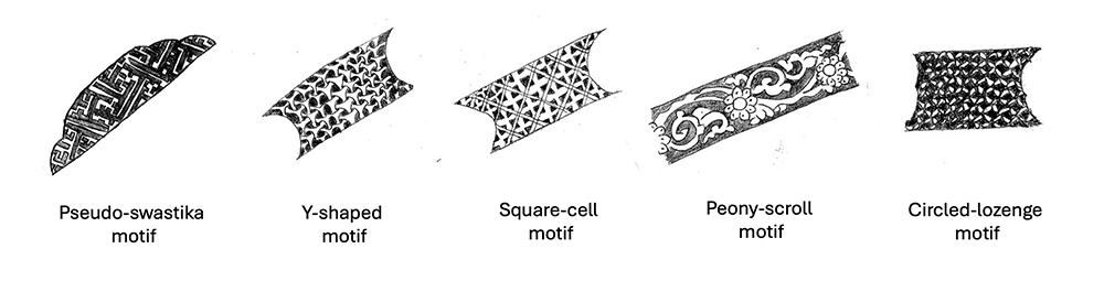 These figural motifs evoke mourning, ritual practice, and personal identity and appear to have been carefully selected to suit the funerary context. While certain motifs were specific to the deceased’s gender, others were not. For instance, turbans and weapon sets appear to have been reserved for male burials (Kanda 2024, 366–67). An interesting comparison can be made between this ceramic tombstone and the stone tombstone of a female deceased once set against the northwest corner of the tomb of Emamzadeh Yahya in Varamin (see Sheikhalhokamaee’s essay, no. 3, fig. 8; Nakhaei’s essay, fig. 12). The latter also features a double-sided comb and three circular motifs, which may represent either rings or prayer seals. As Sheikhalhokamaee notes, motifs such as combs, prayer seals, and rosaries became popular from the Safavid period (1501–1722) onward and appear on the tombstones of both men and women. It is therefore more plausible that such motifs functioned as general markers of religious devotion rather than as indicators of gender.