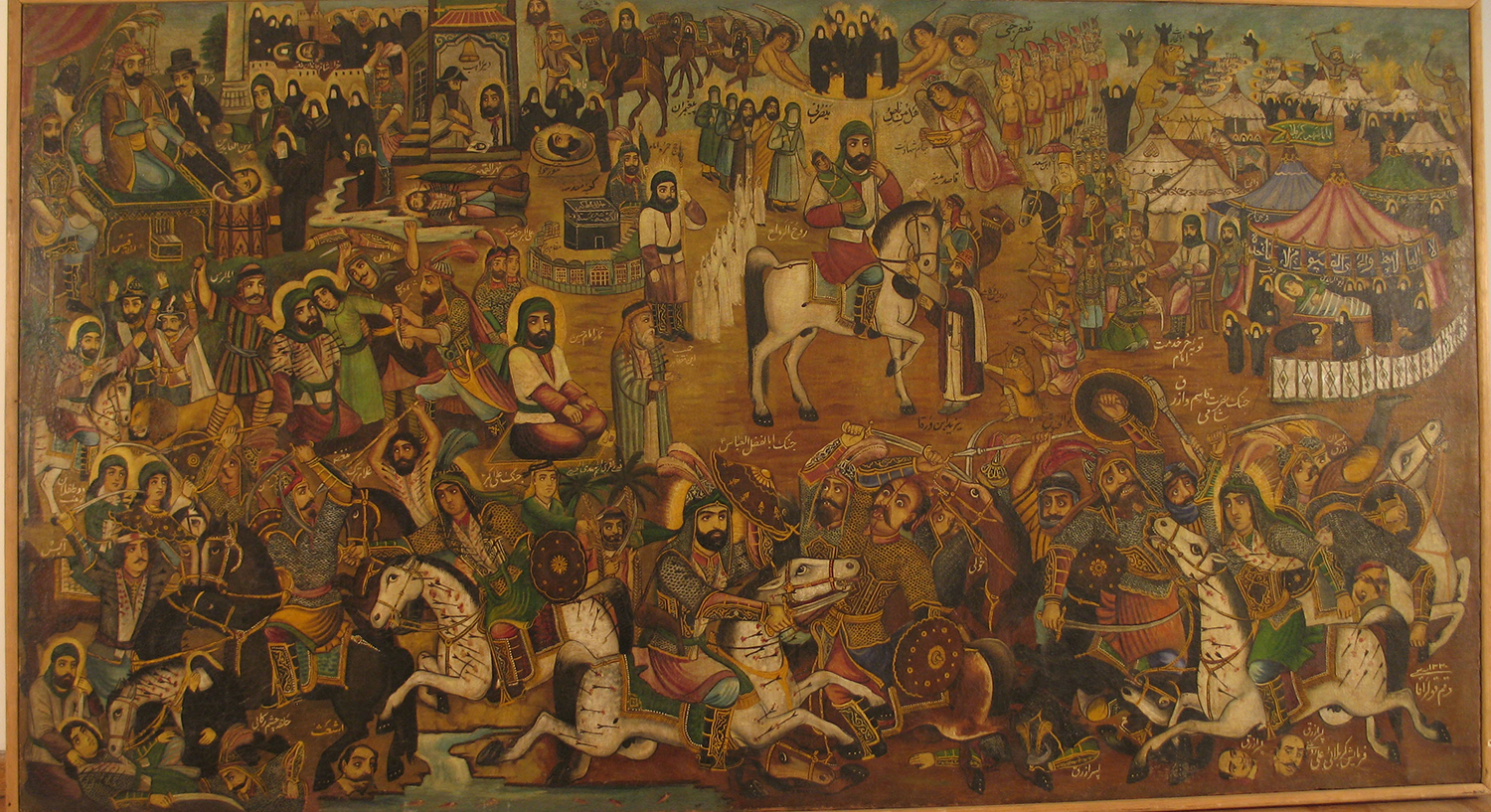 “Journey of Moslem b. Aqil to Kufeh (Kufa)” Signed by Mohammad Modabber (d. 1967), by the order of Mashhadi Safar Eskandariyan Iran, ca. 1950 Oil painting on stretched canvas 80.3 × 99.6 in. (204 × 253 cm) Muzeh-ye Melli-ye Iran (National Museum of Iran), Tehran, 20533 Photograph by Keelan Overton, 2016