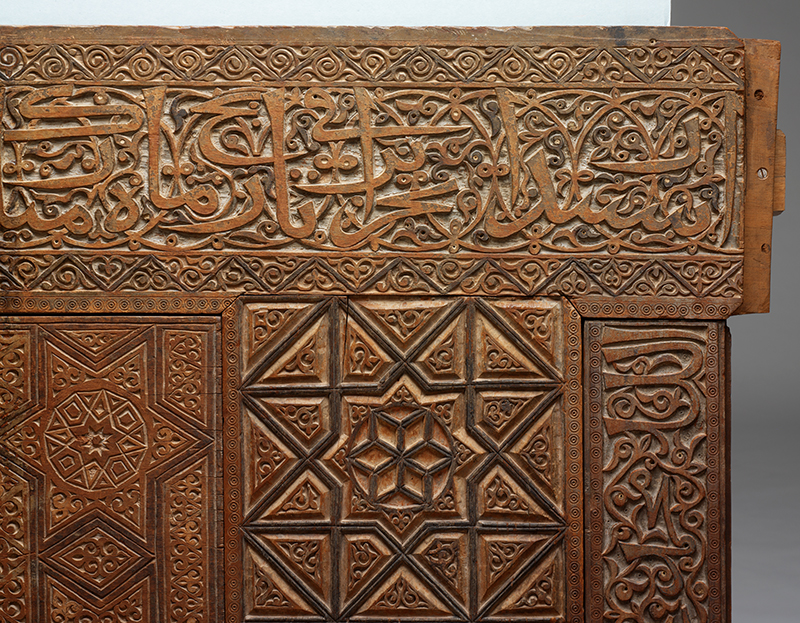 Tomb covers can sit directly on the cenotaph or clothe a larger structure built around the cenotaph usually made of wood (known as sanduq, صندوق) (fig. 1). In the latter case, the textile cover can be referred to as a sanduq-push (صندوق پوش). The act of veiling the cenotaph in multiple layers was simultaneously protective (shielding it from harm and pollution), devotional (as a way to venerate the deceased), and symbolic (as a marker of the status of revered figures among their followers). The most luxurious covers were likely displayed on cenotaphs mainly during special religious occasions.
