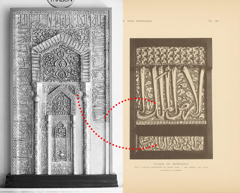 - Letter from Kevorkian to Freer, 25 August 1913, 2, FSA A.01, Box 19, Folder 28, NMAAA. The mihrab’s “mortgage” may reflect Mostowfi al-Mamalek’s need for liquidity to cover extensive purchases in Paris. See September–November 1900, and specifically Amanollah Mirza Jahanbani’s letter to Dust-Mohammad Khan Moʿayyer al-Mamalek on 28 Jamadi al-Awwal 1318/23 September 1900 (Moezzi and Khosronejad, Haz kardīm, 127–28). ↩