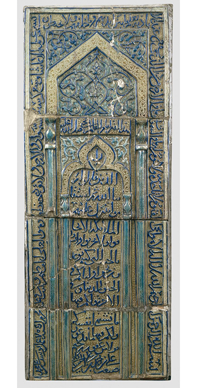 A comparison of the mihrabs from the Emamzadeh Yahya (Varamin) and Emamzadeh ʿAli b. Jaʿfar (Qom) underscores how circumstances of removal and preservation could vary significantly. The targeting of the Qom tomb resulted in profound damage to its mihrab, literally tearing it apart. The removal of the Varamin mihrab was a more organized and methodical enterprise that left it relatively intact. In London, it was displayed as a relatively complete ensemble, whereas the Qom example, and some others, were presented in parts, either as fillers or isolated pieces. Finally, while the remaining parts of the Qom mihrab ultimately entered an Iranian museum (for other examples, see the Checklist, no. 16), the Varamin mihrab was exported and became ‘owned’ by foreigners.