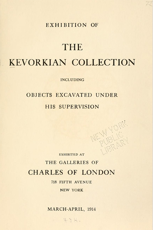- “Payments to H. Kevorkian,” undated but before 13 March 1926 (this is the last entry in the document), PMA. For materials from Iran purchased from Kevorkian between 1915 and 1926, use the ‘advanced search’ in the collections online. ↩