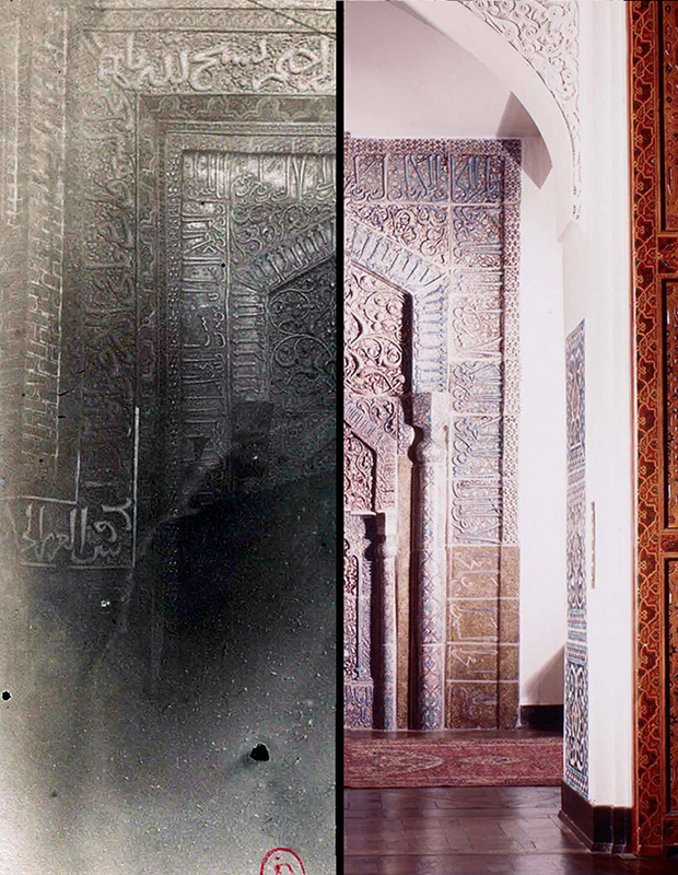 The historiography of the Emamzadeh Yahya’s mihrab inspires a self-reflexive audit on the field of Persian art and architectural history. While the mihrab’s art historical data and significance are well known, it has often been mired in confusion, simplification, exclusion, and isolation, both in English- and Persian-language scholarship. Much of this boils down to access, which has always shaped scholarly engagement. Generally speaking, those who could study the mihrab firsthand focused on it as an isolated artwork, while those who had access to the shrine examined the building independently. Consequently, each side’s understanding of the opposite context remained incomplete or outdated. A 1978 photograph of the tomb—repeated multiple times in museum displays and academic presentations—became the dominant view of the shrine outside of Iran, while scholars inside Iran continued to recycle dated information on the mihrab, including a 1918 photograph.