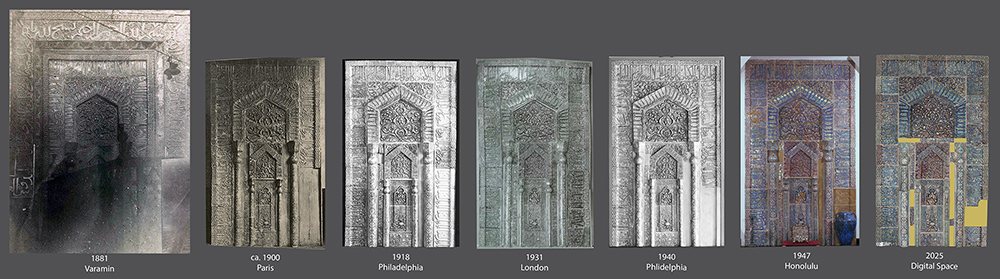 These broad trajectories underscore the mihrab’s geographic reach (Varamin, Paris, London, New York, Philadelphia, Honolulu) and conceptual mutability (architectural element, orientation device, sacred text, cultural heritage, financial commodity, collectible object, private possession, museum masterpiece), depending on the eye of the beholder and/or possessor. Along the way, the ensemble has been praised and memorialized while simultaneously damaged and misunderstood. The mihrab’s layered journeys reveal how sacred objects are not simply displaced in space but continuously remade—physically, semantically, and ideologically—by the structures of power, privilege, and desire that shape their life following their removal.
