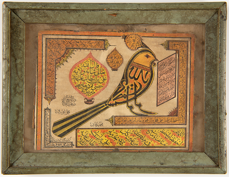 - Checklist catalog entries: Panel of a screen, no. 4; Bismillah bird, no. 27; ʿAlamat and chelcheragh, no. 49