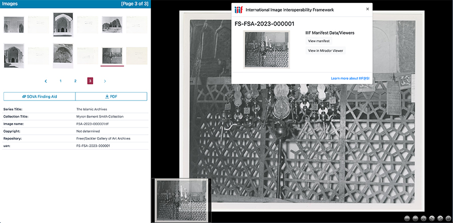 In April 1958, Myron Bement Smith (d. 1970) and a colleague visited Varamin and took an important photograph in the tomb of Emamzadeh Yahya looking south toward the cenotaph and qibla wall. In this interactive Exhibit tour, we take a walk through this photograph and explore the important ritual objects that it has documented for posterity. Among the most important are the wooden screen shielding the cenotaph, a portion of which remains at the site, and a sacred ʿalamat (ceremonial standard) of the Kangarlu tribes and Kohneh Gel neighborhood, which may now be dispersed across various museums, like the tomb’s luster tilework.