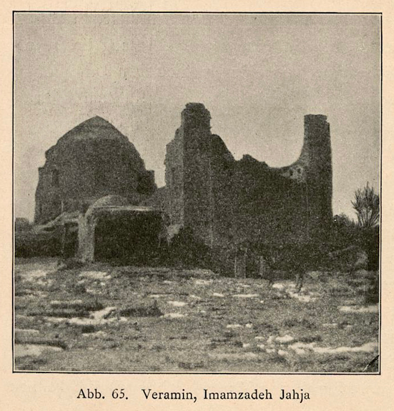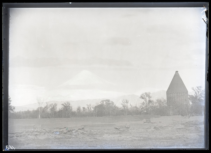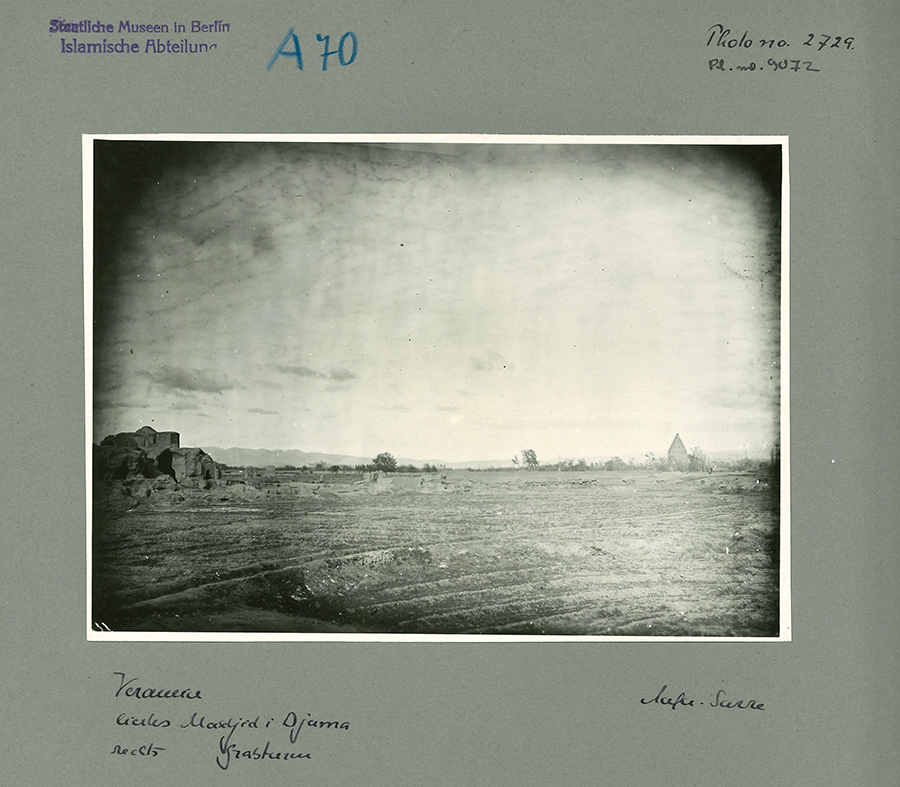 On the 30th of December 1897, Sarre visited Varamin for the first time together with the architect Bruno Schulz (d. 1932). Sarre took a photograph with Mount Damavand in the center and the tomb tower of ʿAlaoddin on the right (fig. 2). This image was published in 1899 in a photographic essay for the general public (pl. XX).