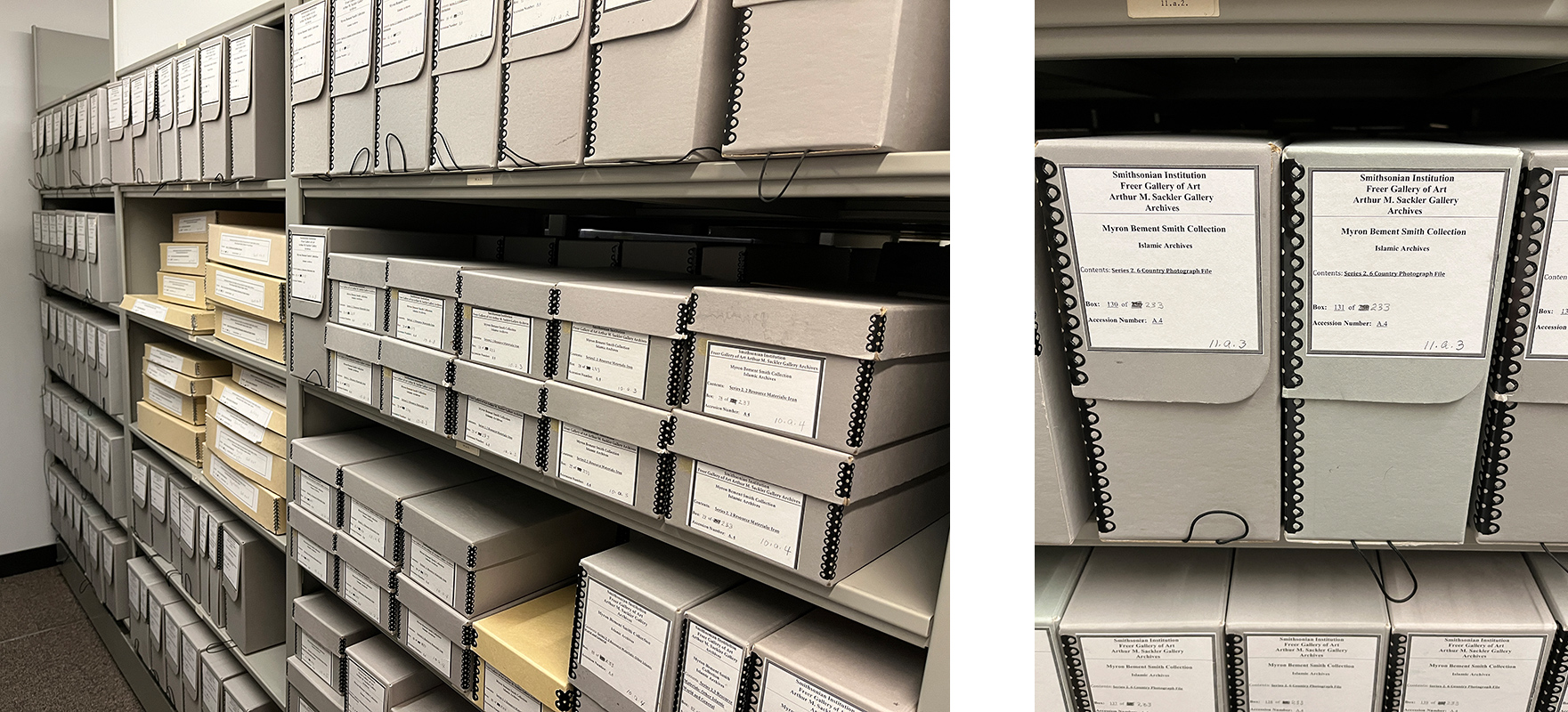 After Myron’s passing, Katharine Dennis Smith sought a permanent home for the Islamic Archives. It was initially given to the Smithsonian’s National Museum of Natural History in 1971. However, Katharine ultimately decided that the Freer Gallery of Art, also part of the Smithsonian, would be a more suitable home, and the collection transferred there in 1977. It has remained there since, moving into the National Museum of Asian Art Archives following its establishment in 1987.