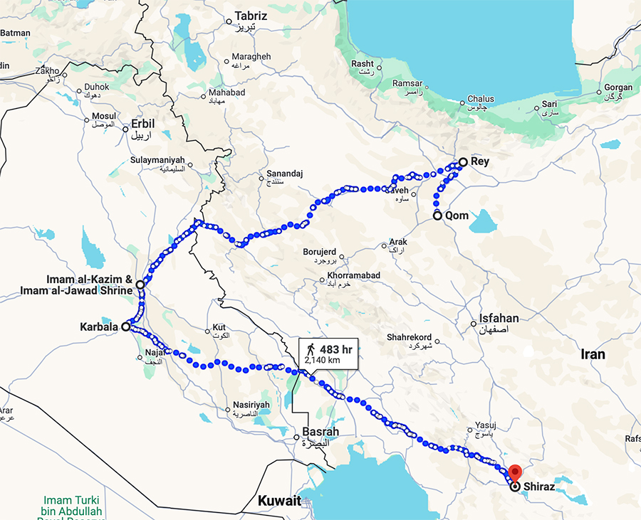 Fath ʿAli Shah is also recorded as having endowed zarihs to the shrines at Kazemayn (map) (no. 9), Shiraz (map) (no. 12), and Rey (map).