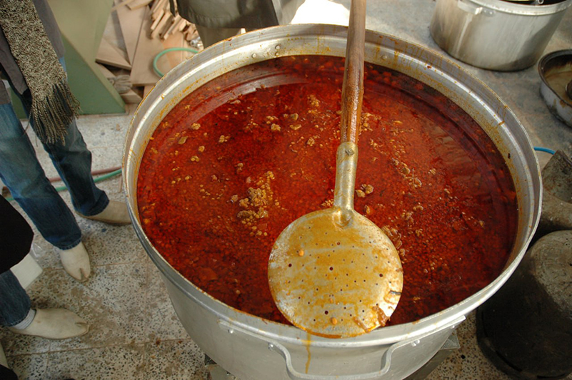 ویدیوی ۴. صحنههای نذریپزان در فیلم بید مجنون، ساختهی مجید مجیدی، ۱۳۸۳ش. (دقیقهی ۴۶:۵۵ تا ۴۷:۴۵). نذری در اینجا خورشت قیمه است.