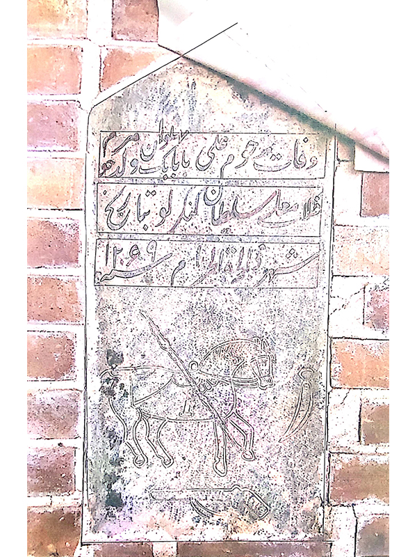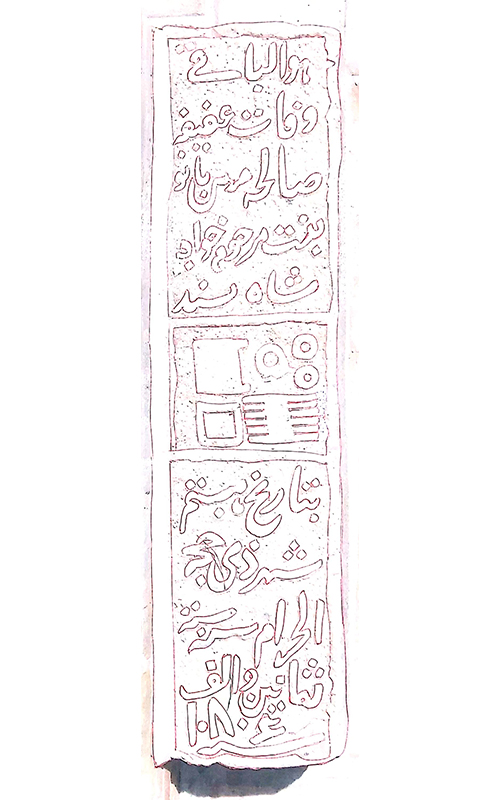 ۳. سنگ گور منقور به اقلام روزمره، مورخ ذیالحجه ۱۰۸۶ق.