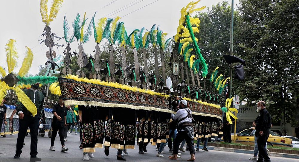 علامت، یک سازهی نمادین صلیبی شکل متشکل از تمثیلهای نمادین درخت سرو، حیوانات اساطیری، و پنجه است. در آیینهای عزاداری شیعی در روزهای تاسوعا و عاشورا، مردان در دستههای عزاداری این سازه را در مسیرهای داخل شهر به حرکت در میآورند، یا در فضاهای آیینی، مانند حسینیه و امامزاده، قرار میدهند. علامت معمولا یک تیغهی اصلی محوری و تعدادی تیغهی قرینه در طرفین آن دارد. به طور سنتی، علامت به اندازهای بود که یک مرد در مسیر عزاداری آن را حمل میکرد. اما به تدریج، هیئتهای عزاداری برای نمایش تعلق مذهبی و نیز قدرت مالیشان، به سمت سفارش دادن علامتهای بزرگتری رفتند که حمل آن از توان یک فرد خارج بود. علامت معمولا روی یک وسیله چرخدار که به همین منظور طراحی شده قرار میگیرد و در مسیر عزاداری حرکت داده میشود (ت. ۱–۲).