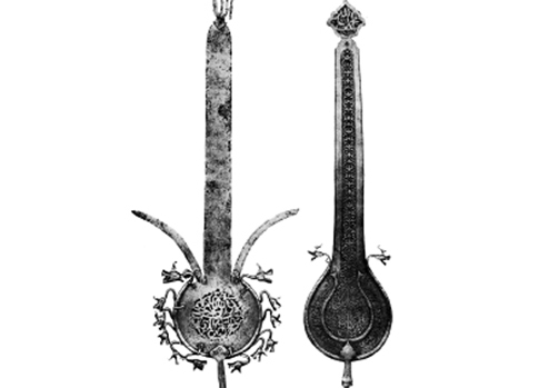 معروفترین روایت برای منشأ نماد علامت آن است که آن را حول محوریت نماد شهادت در قالب سازهی نمادین سرو در فرهنگ ایرانی ساختهاند. گرچه علامتهای امروزی شکلی شبیه صلیب دارند، اما در واقع شکل تکامل یافتهی علامتهای تک تیغهای هستند که از قرن هفدهم میلادی و دوران صفویه به بعد رواج یافتند. میتوان علامتهای امروزی را توسعهی فرمهای نمادین سنتی با نام توغ دانست (ت. ۳). توسعهی علامت از تیغهی محوری، که گاه عَلَم و گاه توغ نامیده میشود، بصورت عدد فرد بوده است؛ یعنی علامتها همیشه تعدادشان فرد است، یکی در میانه، یکی در چپ و یکی در راست. لذا به تدریج به تعداد ۳، ۵، ۷، ۹، ۱۱، ۱۳، ۱۵، ۱۷، الی ۲۳ تیغه ساخته شدهاند.