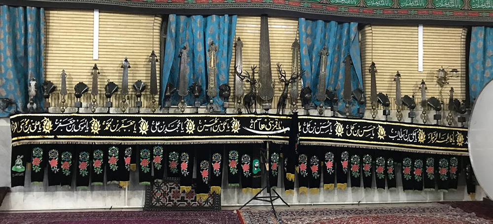 این چلچراغ همچنین شامل تعداد بسیار اندکی نمادهای حیوانی مانند مرغ رخ و طاووس است که نمادی از پرندههای بهشتی در عقاید اسلامیاند. همچنین روی چلچراغ یک زره یا کلاهخود نیز که در گذشته نشان لباس جنگی و ابزاری برای اجرای تعزیه (فهرست، شماره ۴۶–۴۷) بودند، وجود دارد. استفاده از زره و کلاهخود نمایانگر سلیقهی خاص این طایفه است، زیرا قرار دادن آنها بر روی چلچراغ در فرهنگ شیعی متداول نیست. در سنتهای عزاداری شیعی در مناطق مختلف ایران، علامت رواج بیشتری دارد و چلچراغ پدیدهی نادری است. هرچند همه با آن آشنا هستند اما تقدس و اهمیت علامت بسیار بیشتر است و تابوهای زیادی حول آن برای جلوگیری از بیحرمتی به آن وجود دارد.