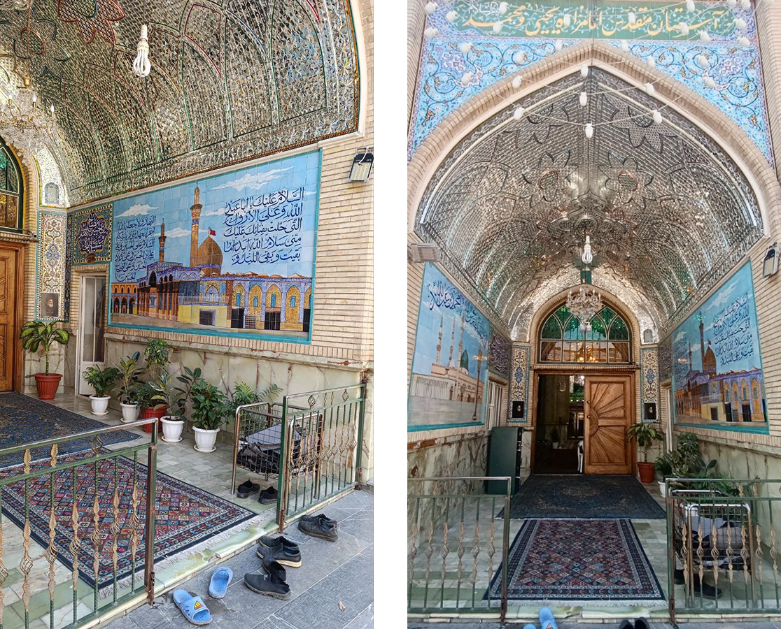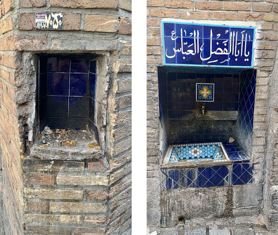 مسیر کوچهی امامزاده یحیی را که مستقیم طی کنیم در امتداد کوچه نرسیده به آستان فضایی برای خوردن آب و روشن کردن شمع در نبش کوچهای به چشم میخورد (ت. ۲). از گذشته سنت روشن کردن شمع در سقاخانهها و همینطور منابع آب نذری به یاد شهیدان تشنهلب کربلا مرسوم بوده است و هم اکنون نیز چنین فضاها یا منابع آب نذری در محلات قدیمی در تهران دیده میشود.