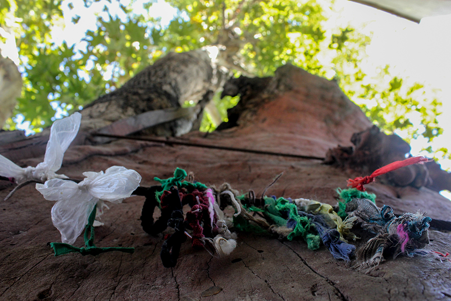 آنگونه که از سخنان مردم در مصاحبهها مطلع شدم، مردم در گذشته باور بسیار قوی به برآوردن حاجت و معجزات این درخت داشتند. لذا خیرات و نذرهای بسیاری برای درخت انجام میشد و بر درخت با پارچههای رنگی یا نخ دخیل میبستند (ت. ۵). متولی امامزاده توضیح میدهد که امروزه هم برخی از افراد قدیمی محله یا سالمندان به معجزهی درخت باور دارند و نذرهای خود را داخل امامزاده ادا میکنند. این نذرها شامل خرما، میوه، حلوا و نمک است.